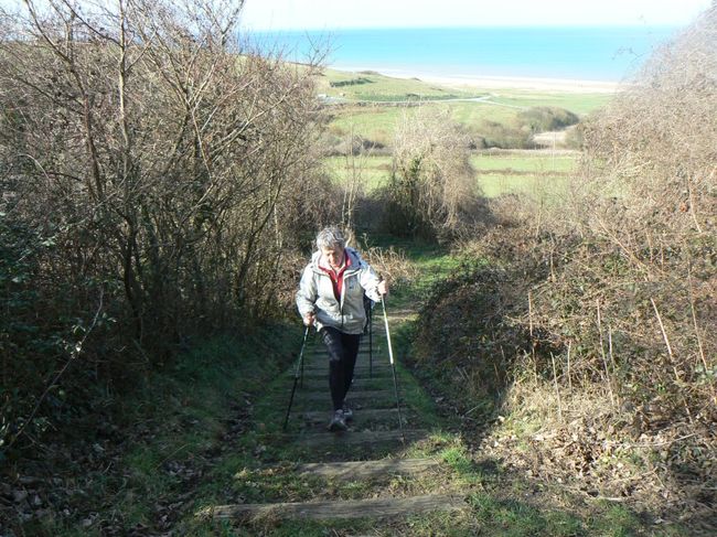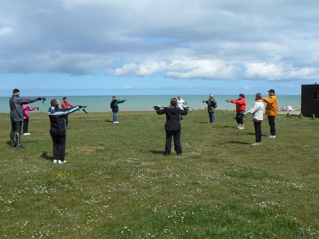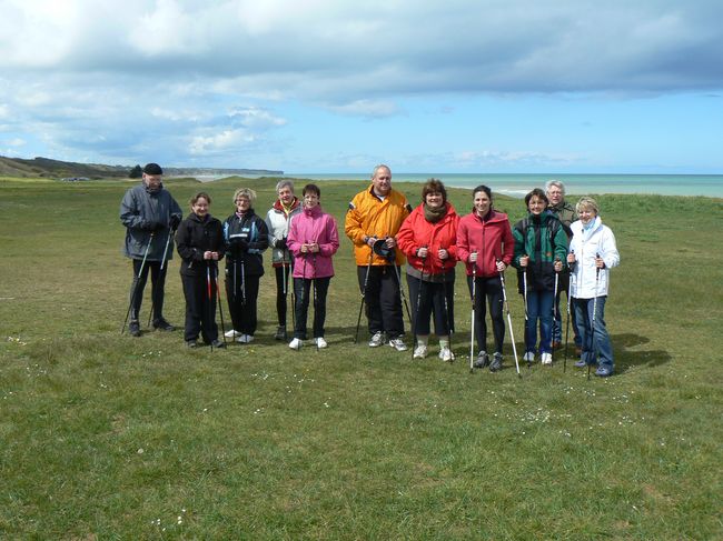 Eolia Normandie vous propose des sorties en marche nordique pour découvrir Omaha Beach et ses sous-bois, au départ de Colleville sur Mer.