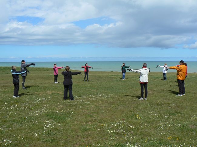 Eolia Normandie vous propose des sorties en marche nordique pour découvrir Omaha Beach et ses sous-bois, au départ de Colleville sur Mer.